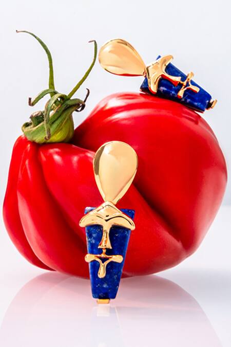 Gold Plated Lace, Stones The Lazuli Sculpt Earrings