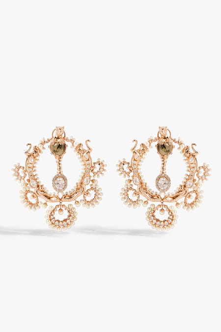 Rose Gold Pearls, Crystals, Stones Trinity Of Leopards Embellished Chandbalis