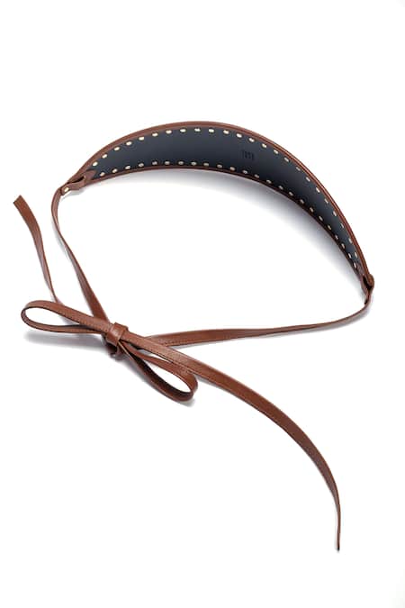 Brown Oval Obi Leather Studded Belt
