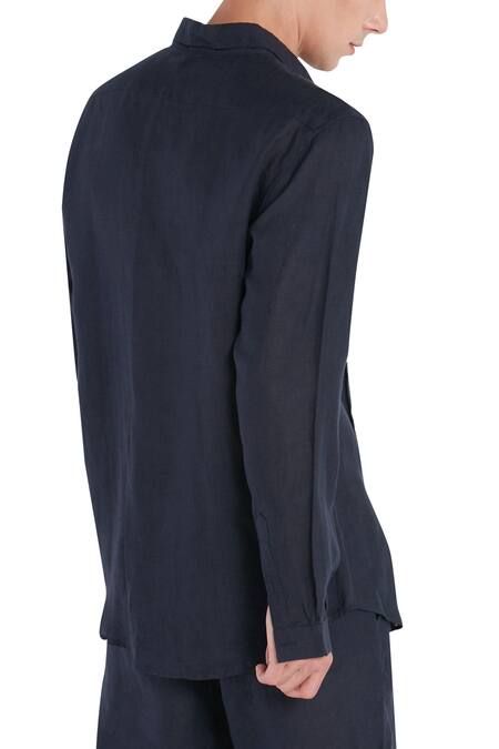Navy blue-hued overlap style collared shirt is all your day-to-day collection needs.