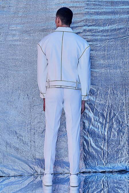 Buy_Line Out Line_White Cotton Piping Oversized Boxy Bomber With Trouser_at_Aza_Fashions