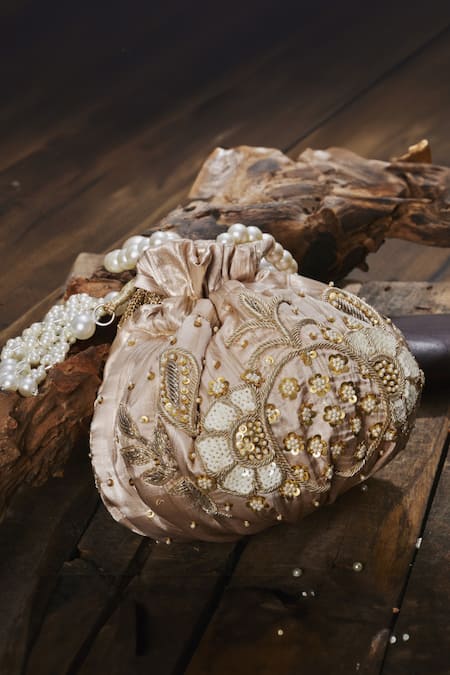 Gold Cut Work, Pearls, Sequins Zara Zardozi Bloom Embellished Potli Bag