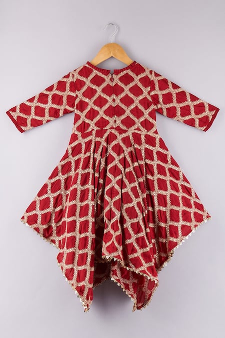 Red Silk Sequins, Zari Embroidered Asymmetric Dress