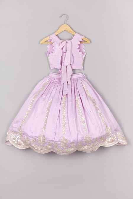 Purple Chanderi, Linen, Muslin Gota Patti Bloom Vine Embroidered Lehenga Set