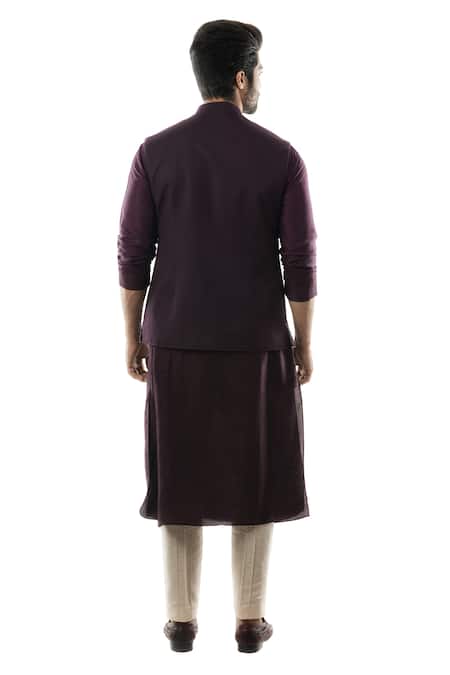Purple Bemberg Silk, Terrycot Embroidered Bundi And Kurta Set
