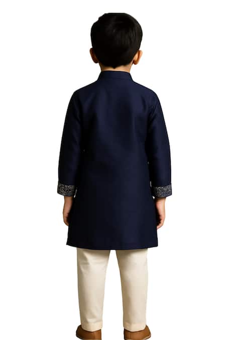 Buy_PAARSH_Navy Linen, Satin, Cotton Embroidery Blue Designer Kurta Set _Online_at_Aza_Fashions