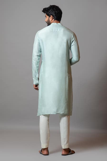 Baltic sea blue Bamberg silk kurta in embroidered pintucks. Paired with solid cotton pant.