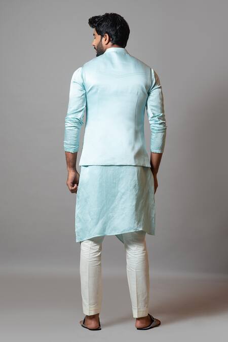 Overlap placket bundi, Embroidered kurta, Note:, Kurta and pant worn by the model are not for sale