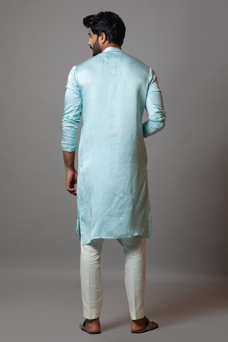 Blue Linen Satin, Malai Cotton Yosemite Valley Kurta Set
