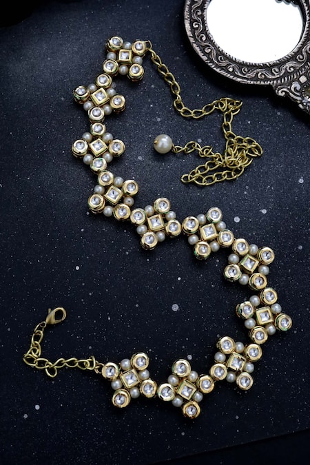Gold Pearls, Rhinestones Kundan Floral Headband