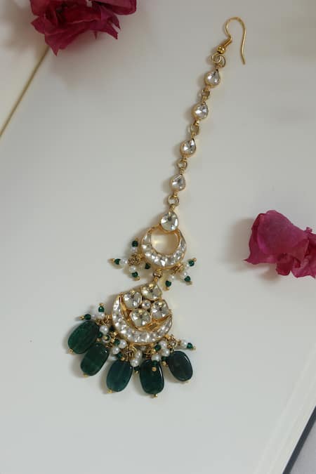 Green Kundan Maangtikka