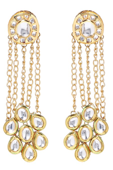Buy_Paisley Pop_Gold Plated Diamonds, Stones Kundan Chain Danglers _Online_at_Aza_Fashions