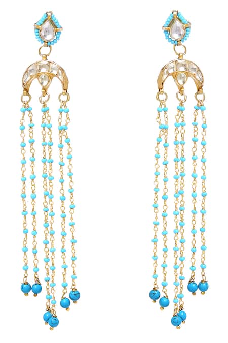Buy_Paisley Pop_Blue Beads Kundan Chain Earrings _Online_at_Aza_Fashions