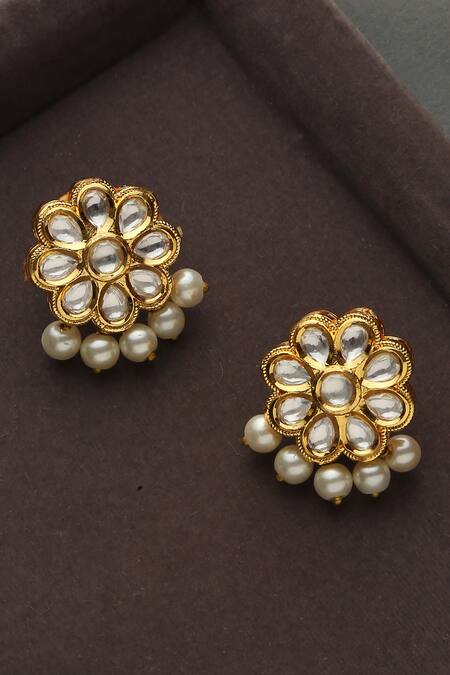Buy_Paisley Pop_Gold Plated Pearls Kundan Earrings _Online_at_Aza_Fashions