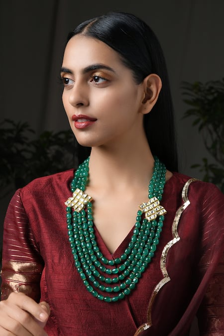 Buy_Paisley Pop_Gold Plated Bead Kundan Layered Necklace _Online_at_Aza_Fashions