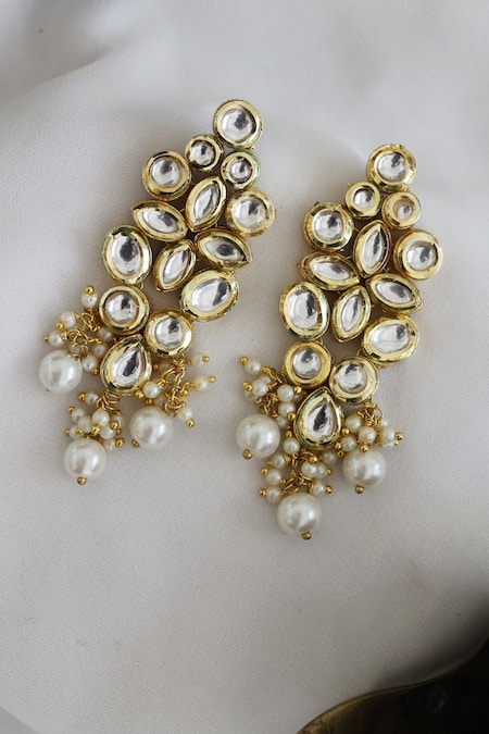 Gold Plated Kundan Pearl Embellished Danglers And Drops
