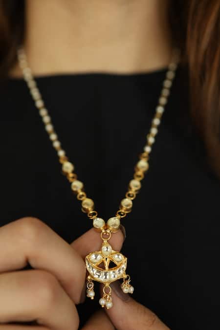 Buy_Paisley Pop_Gold Plated Silver Copper Alloy Kundan Pendant Necklace _at_Aza_Fashions
