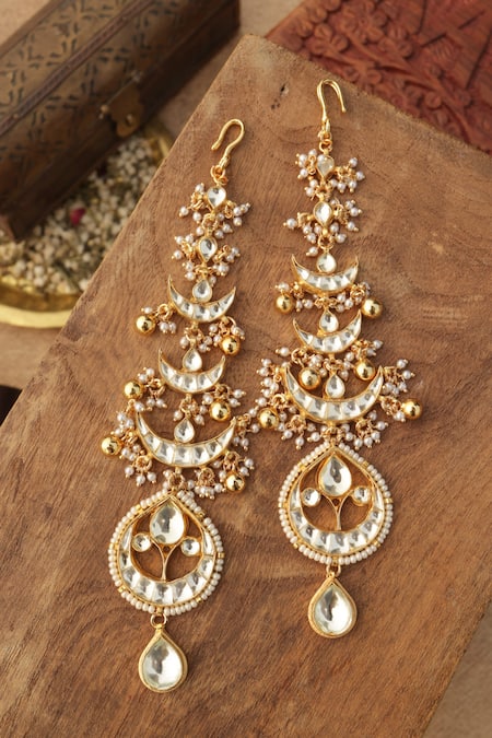 Gold statement earrings featuring intricate kundan and pearl embellishments