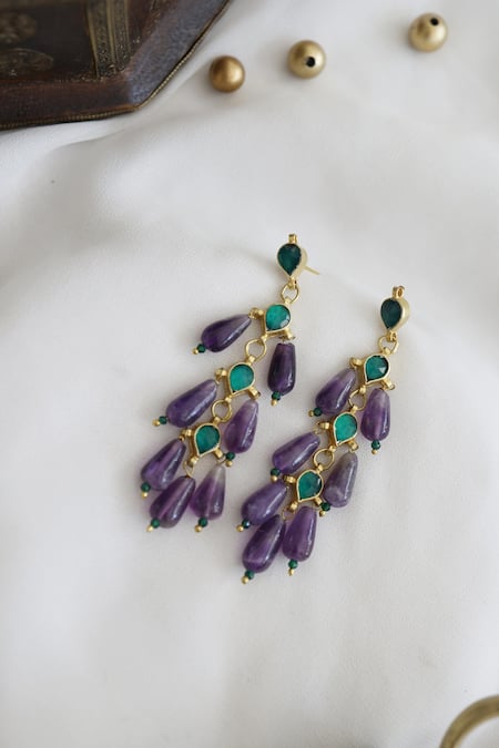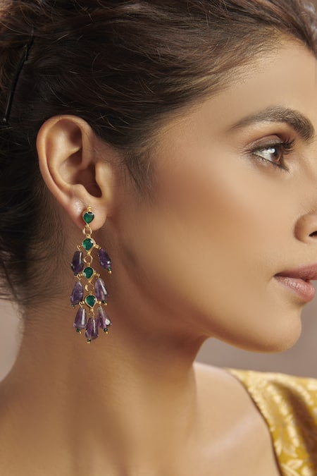 Purple Natural Stones Kundan Danglers And Drops