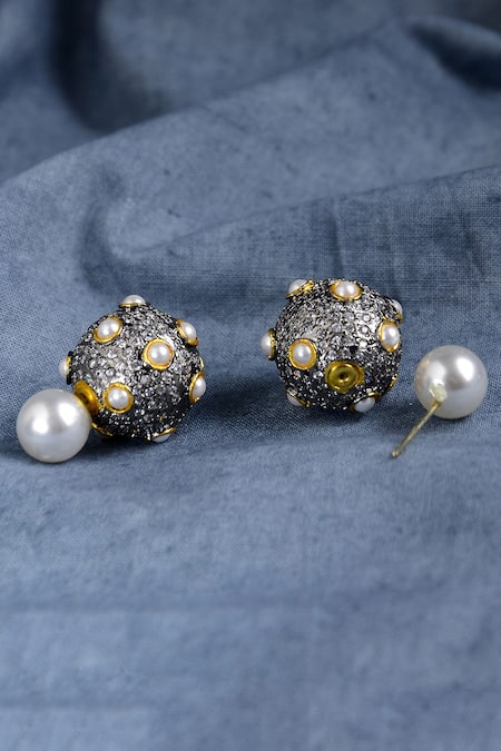 Silver toned stud earrings featuring faux diamonds and pearl embellishments