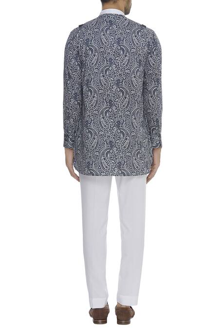 Buy_Vikram Bajaj_White Cotton Printed Paisley Kurta With Pant_at_Aza_Fashions