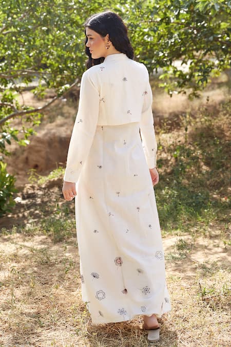 Ivory Cotton, Silk Embroidery Collared Floral Dress