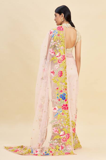 Pink Net Embroidered Saree