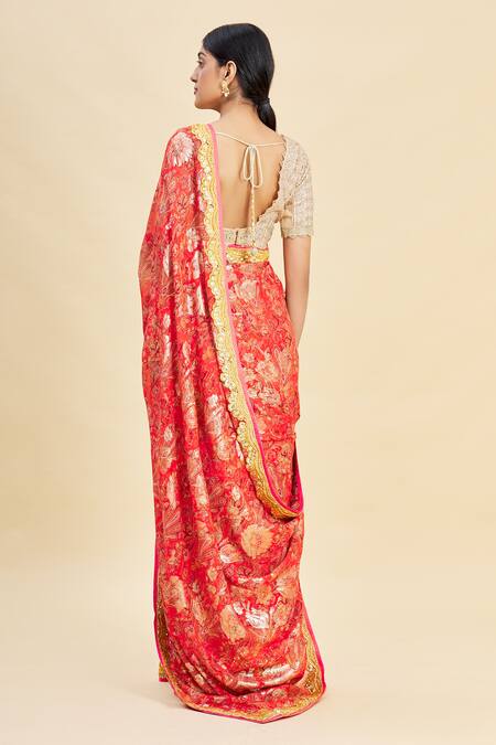 Applique embroidery with sequin detail on border, Note:, Blouse worn by model is not for sale.