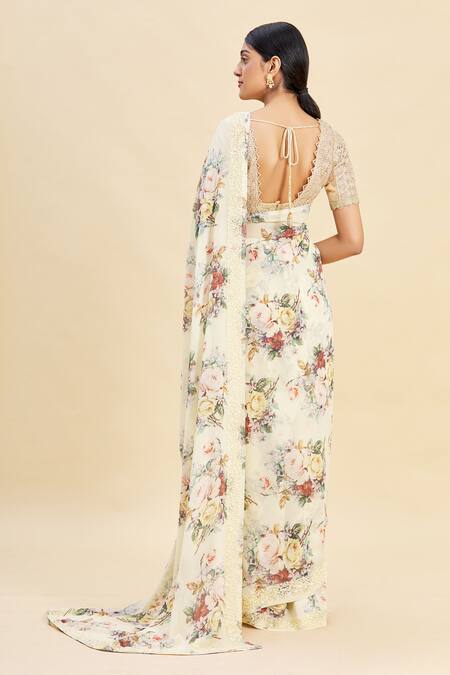Embroidered sequin motifs on border, Note:, Blouse worn by model is not for sale.