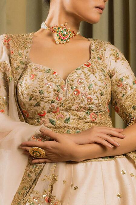 Ivory Silk, Organza Sequins, Lakefresh Embellished Floral Bridal Lehenga Set