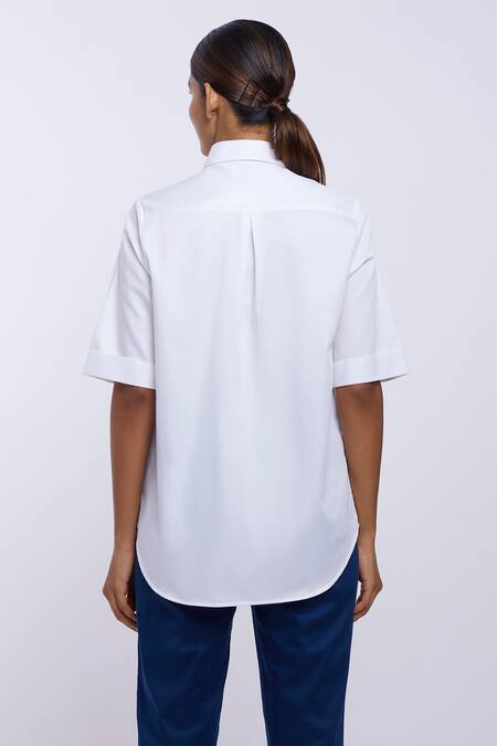 White Cotton Satin Tassels Collared Thread Taselled Shirt