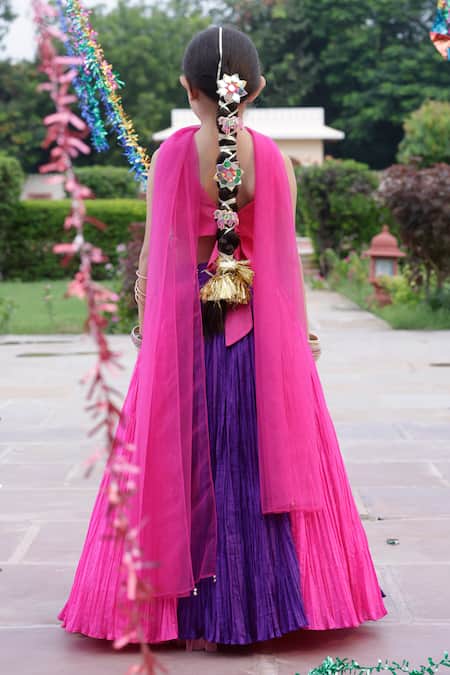 Buy_Panchhi By Kanupriya Tibrewala_Pink , Satin, Net, Crepe Forest Life Mirror Lehenga Blouse Set_Online_at_Aza_Fashions
