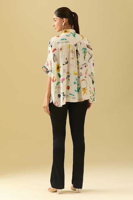 Buy_Pankaj & Nidhi_Beige Tassels, Embroidery Collared 3d Asymmetric Top