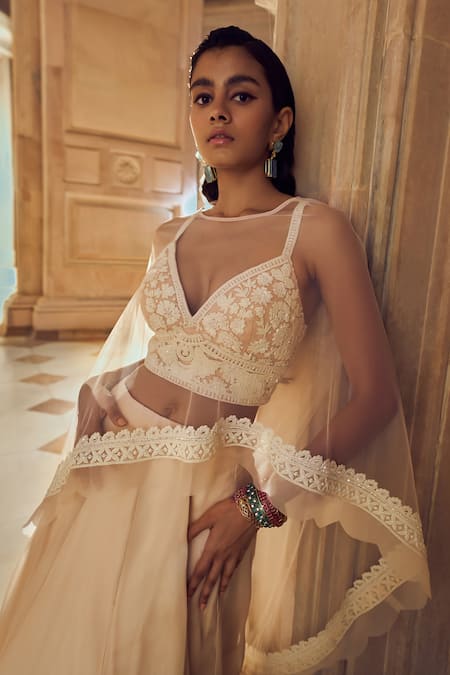 Blouse: 16 inches, Lehenga: 45 inches, Cape: Front: 21 inches, Back: 53 inches