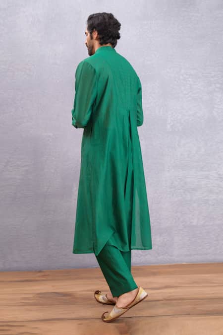 Buy_Torani_Green Bundi And Kurta Handwoven Chanderi, Pure Cotton Silk & Panna Gulfam & Set _Online_at_Aza_Fashions