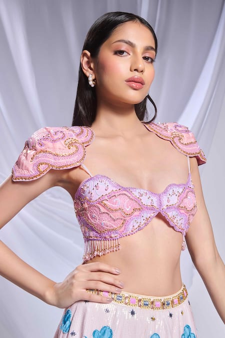 Lehenga features pockets, Crystal drop hem blouse, Cutout back design