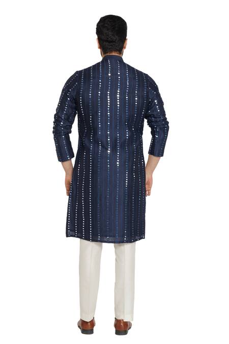 Royal blue kurta with mandarin collar, resham & aabla embroidery. Paired with contrast pants.