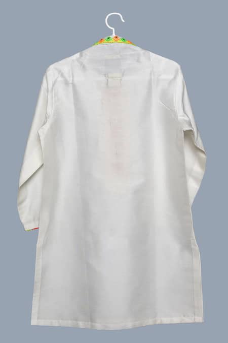 White Spun Silk Placement Embroidery Floral Placket Kurta With Pant