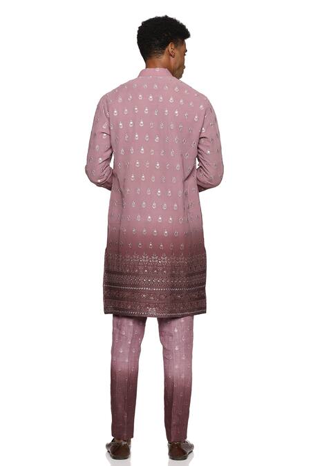 Purple kurta featuring floral thread and mirrorwork embroidery. Paired with matching pant for a complete look.