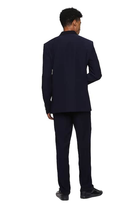 Buy_Paresh Lamba Signatures_Blue Cupro Plain Layered Lapel Collar Jacket  _Online_at_Aza_Fashions