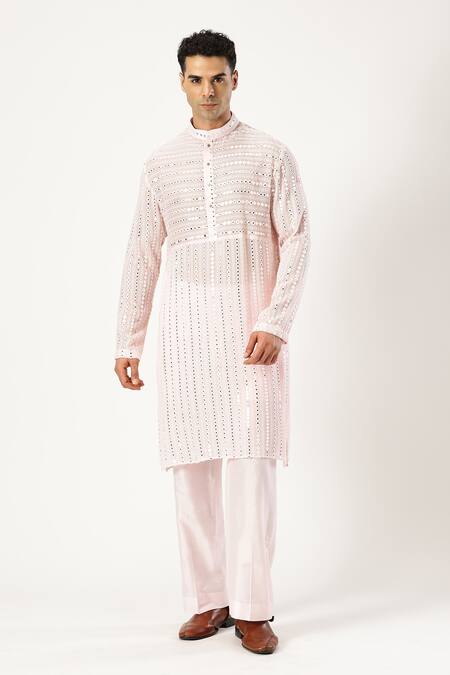 Shop_Paresh Lamba Signatures_Pink Georgette Mirrors, Embroidery Mirrorwork Embellished Kurta_Online_at_Aza_Fashions