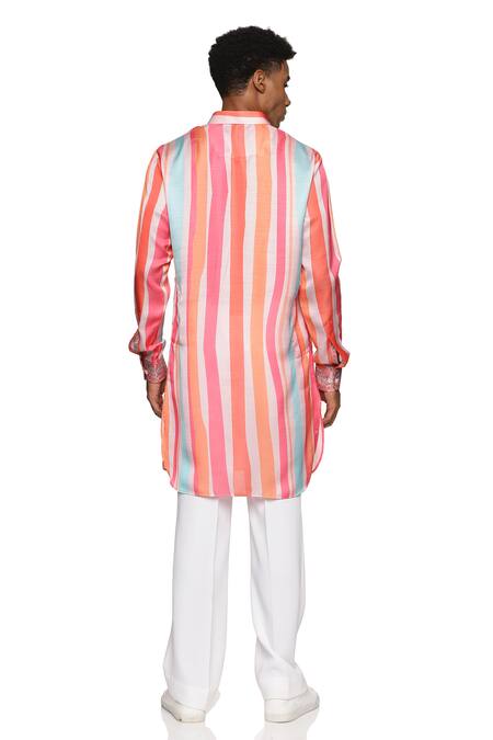 Buy_Paresh Lamba Signatures_Multi Color Satin, Silk Stripe Print Short Kurta_Online_at_Aza_Fashions