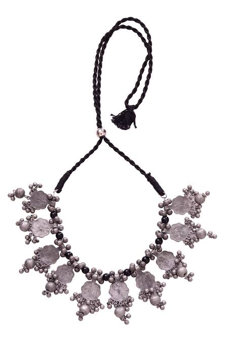 Buy_5elements_Silver Plated Ghunghroo Parija Oxidised Choker_at_Aza_Fashions