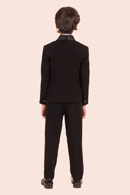 Black Brocade, Cotton, Polyester Beads, Stones Embroidered Tuxedo Set