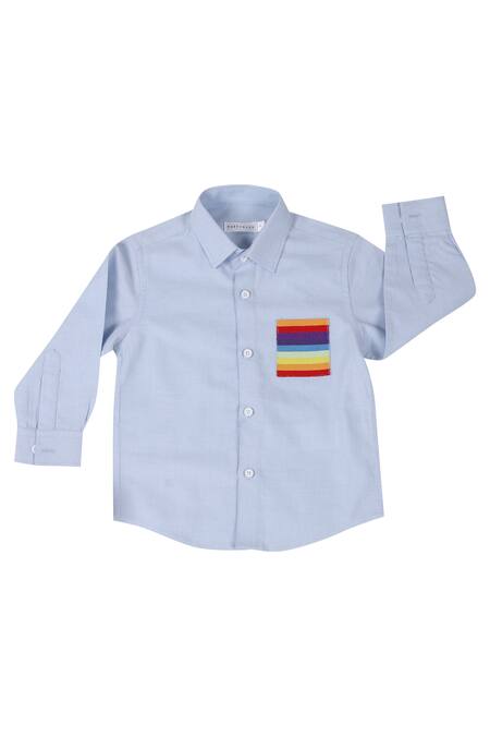 Blue Oxford, Cotton Patchwork Rainbow Pocket Shirt