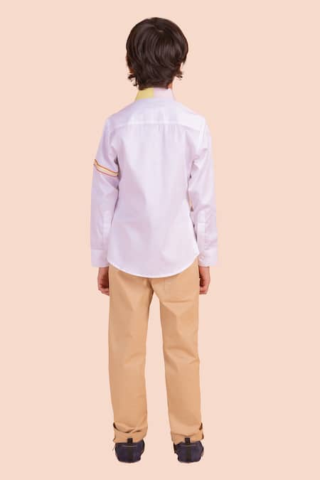 White shirt featuring hot air balloon and aeroplane motif embroidery