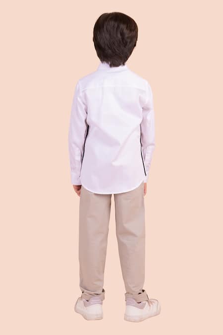 Panda motif embroidery on the front, Collared neckline, Front placket closure