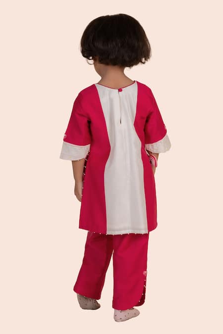 Pink Cotton, Silk Sequins, Embroidery Heart Motif Kurta Set