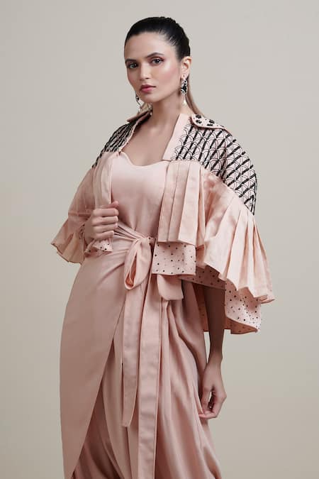 Pleated cape with embellishment >