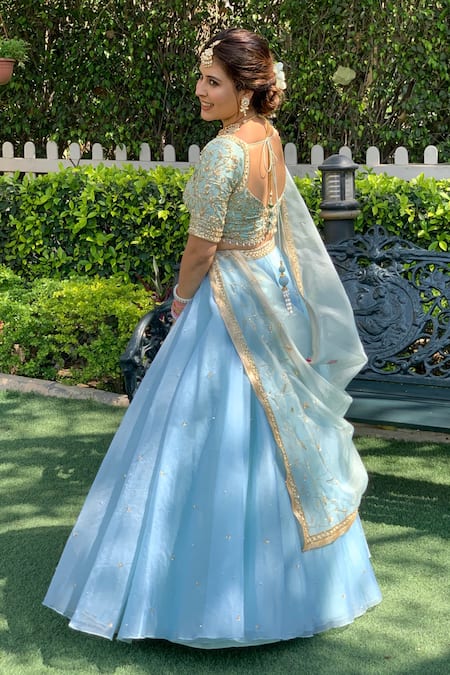 Blue Organza Sequins, Beads Embroidered Lehenga Set